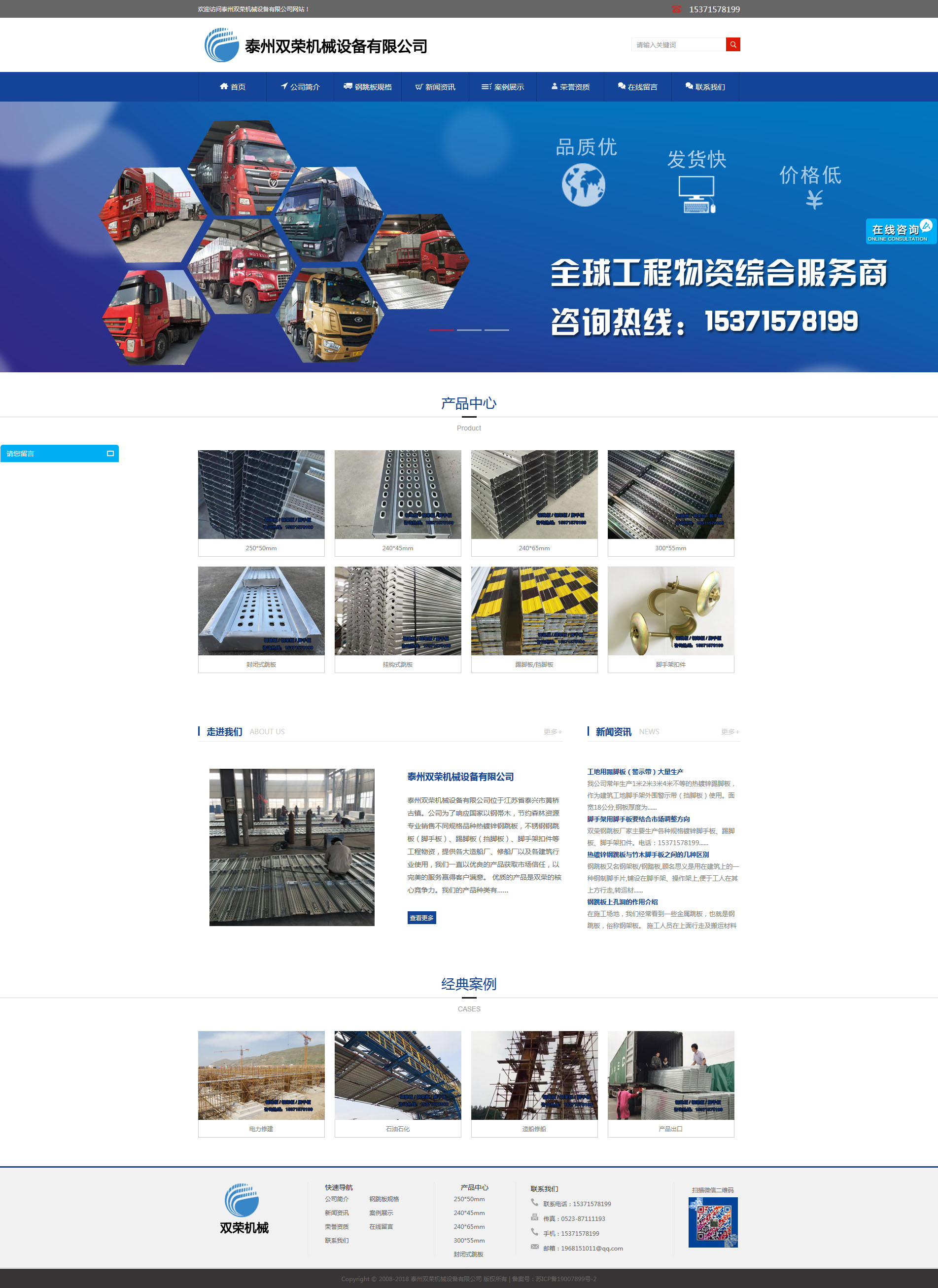】位于江蘇省泰興市黃橋古鎮(zhèn)。公司為了響應國家以鋼帯木,節(jié)約森林資源專業(yè)銷售不同規(guī)格品種熱鍍鋅鋼跳板,不銹鋼鋼跳板(腳手板)、踢腳板(擋腳板)、腳手架扣件等工程物資,提供各大造船廠、修船廠以及各建筑行業(yè)使用,我們一直以優(yōu)良的產品獲取市場信任,以完美的服務贏得客戶滿意。