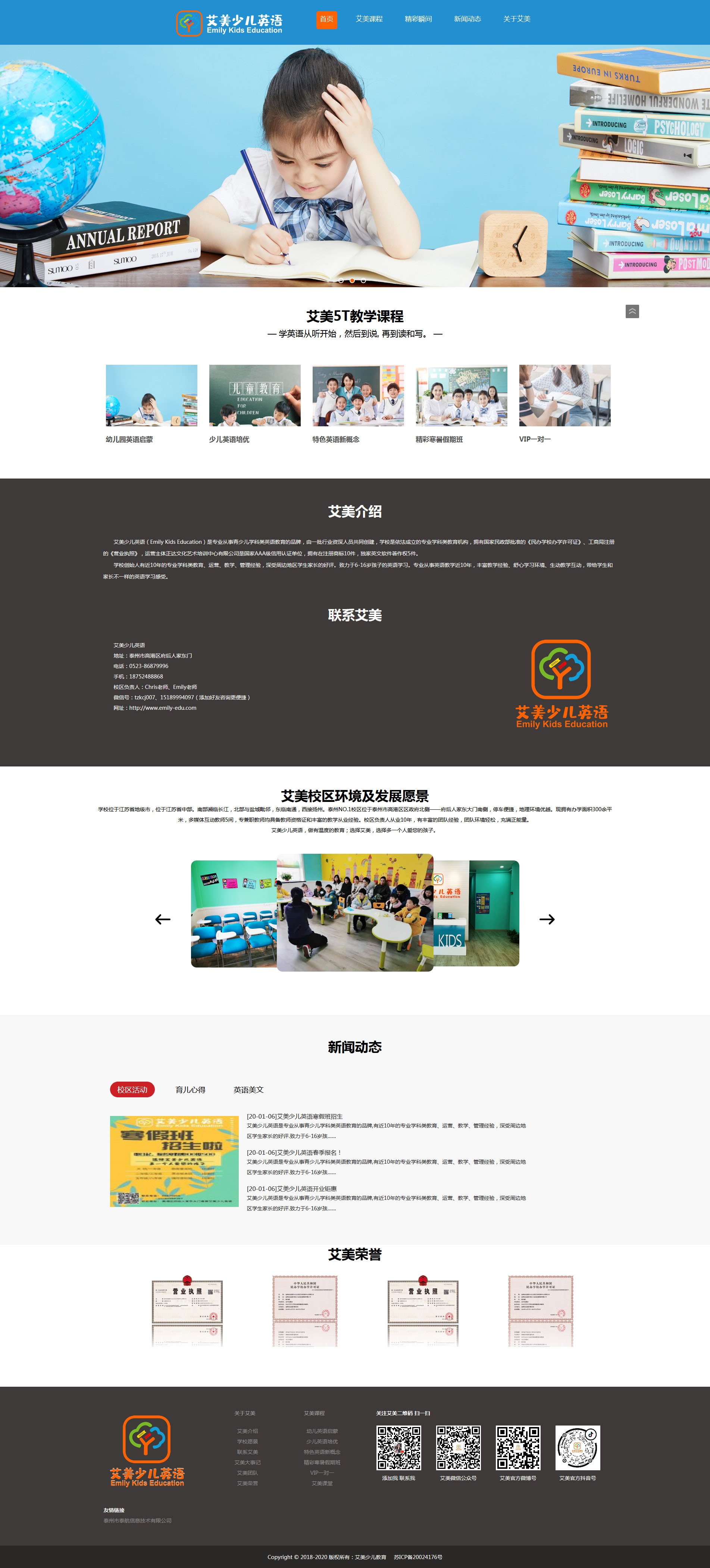 艾美少兒英語(Emily Kids Education)【網址:http://www.emily-edu.com】是專業從事青少兒學科類英語教育的品牌,由一批行業資深人員共同創建,學校是依法成立的專業學科類教育機構,擁有國家民政部批準的《民辦學校辦學許可證》、工商局注冊的《營業執照》,運營主體正達文化藝術培訓中心有限公司是國家AAA級信用認證單位,擁有在注冊商標10件,獨家英文軟件著作權5件。