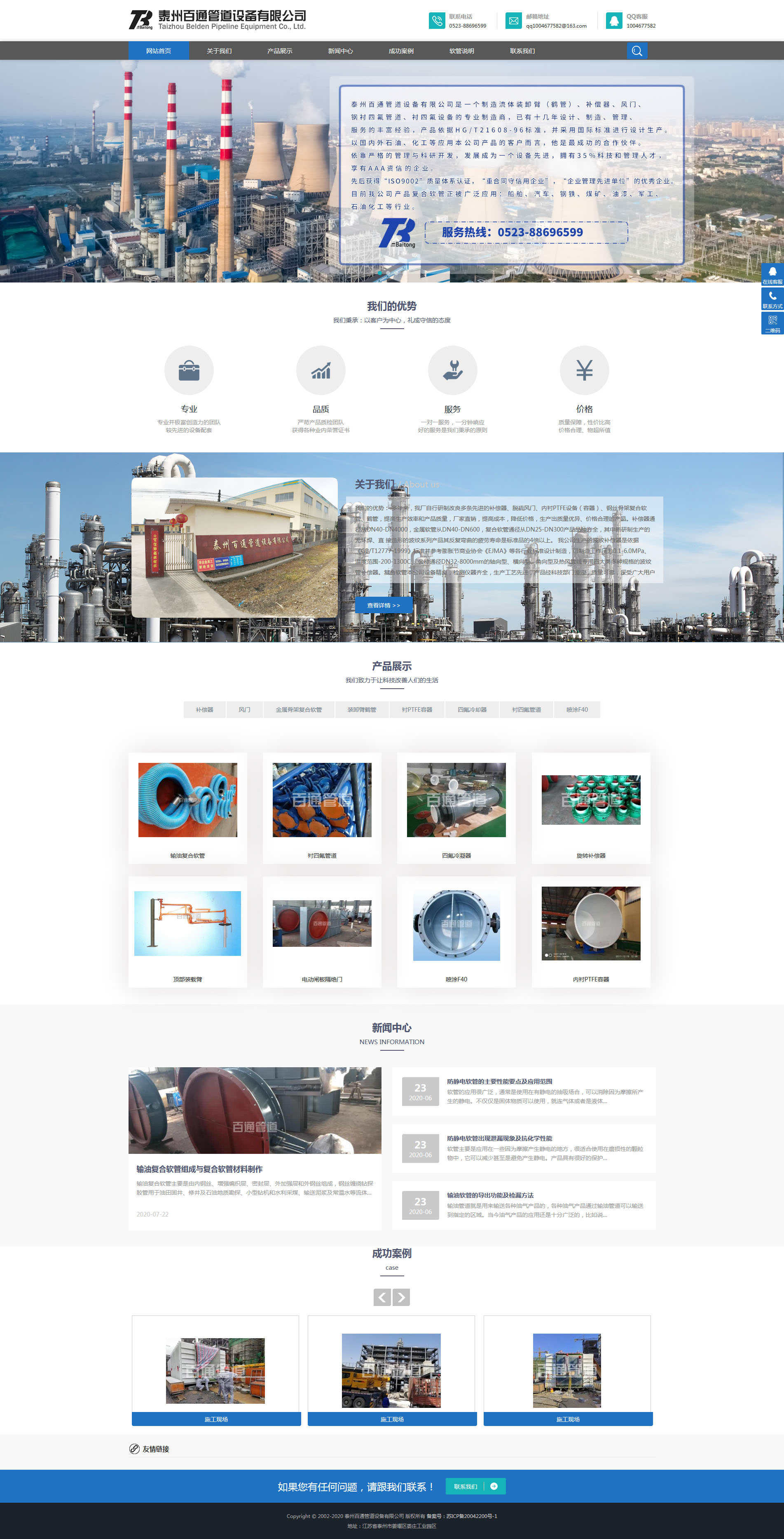 泰州百通管道設備有限公司【網(wǎng)址:http://www.tzbtgd.com】是一家集研發(fā)、生產(chǎn)、銷售襯里設備為一體的高新技術型企業(yè)。公司專注于化學工業(yè)、石油工業(yè)等領域的復合軟管、橡膠軟管波紋補償器、鶴管、風門、彈簧支吊架、防腐容器、防腐儲罐、防腐管路系統(tǒng)內(nèi)襯氟塑料和氟樹脂噴涂,已具備十多年的設計、制造和管理經(jīng)驗,并且擁有一批經(jīng)驗豐富的售后服務技術人員。